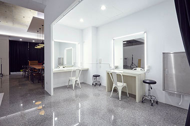 化妝間備有兩座化妝台,一台掛燙機,衣桿衣架。